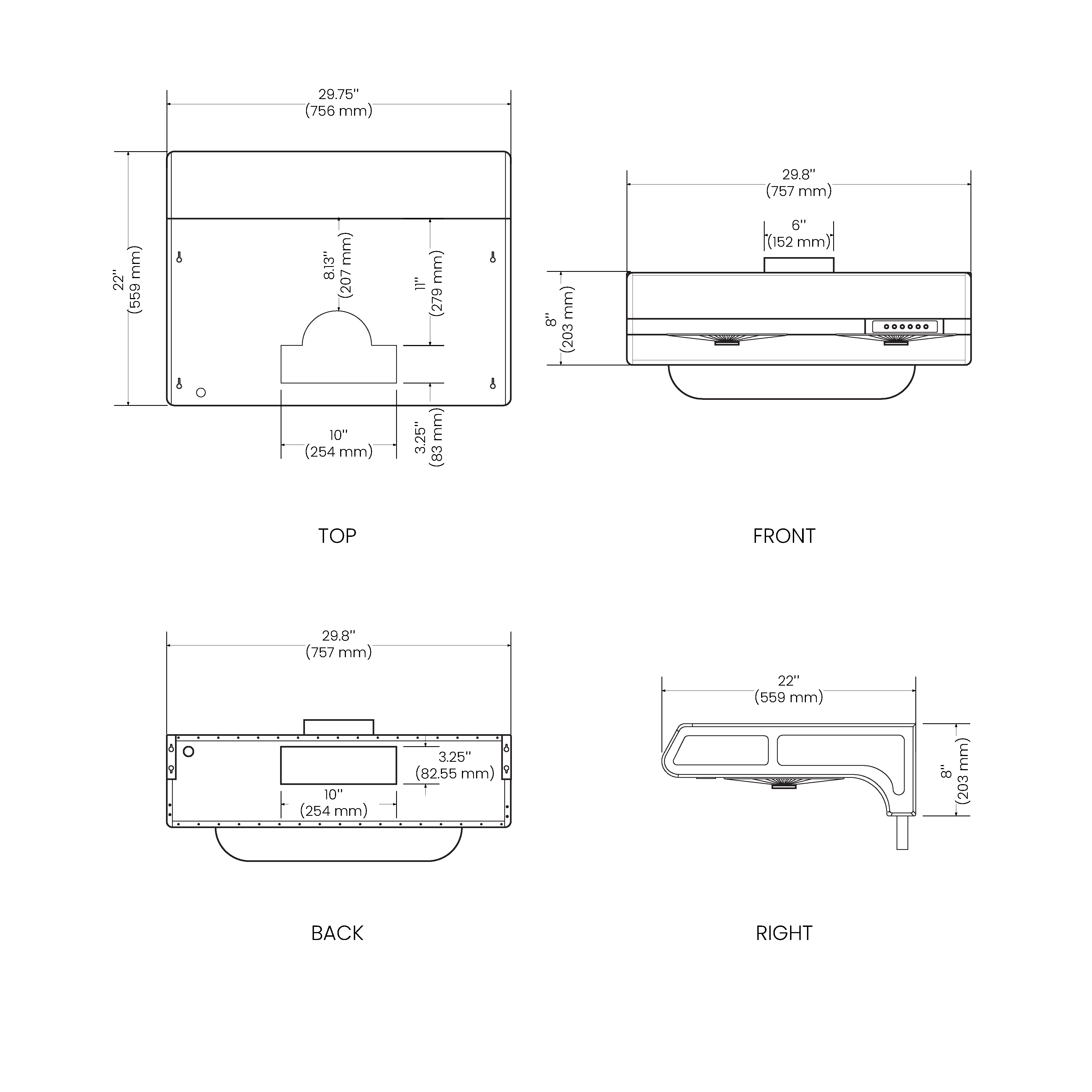 Hood Dimensions (W×D×H) 29.75" × 22" × 8"