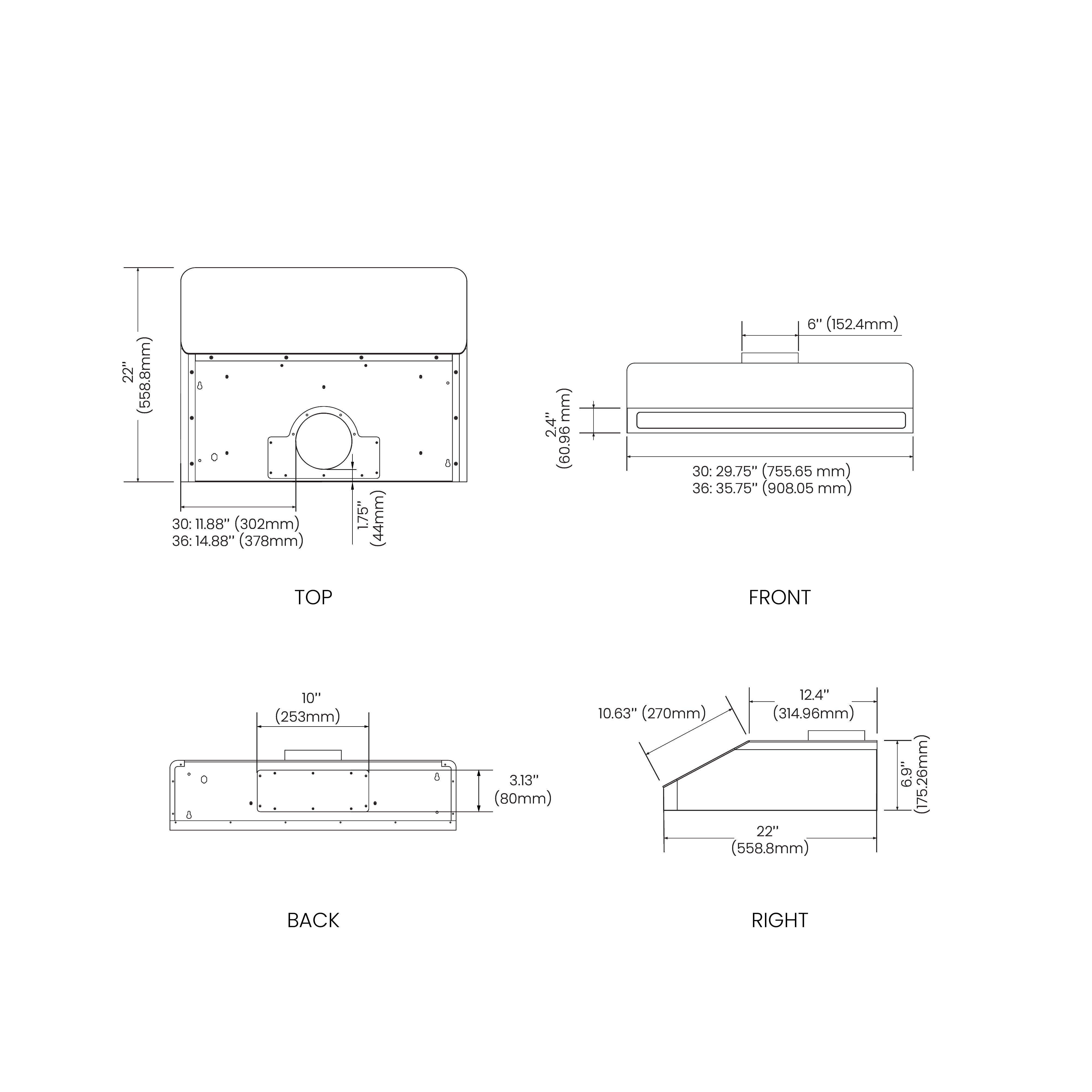 Hood Dimensions (W×D×H) | 35.75" × 22" × 6.9" |