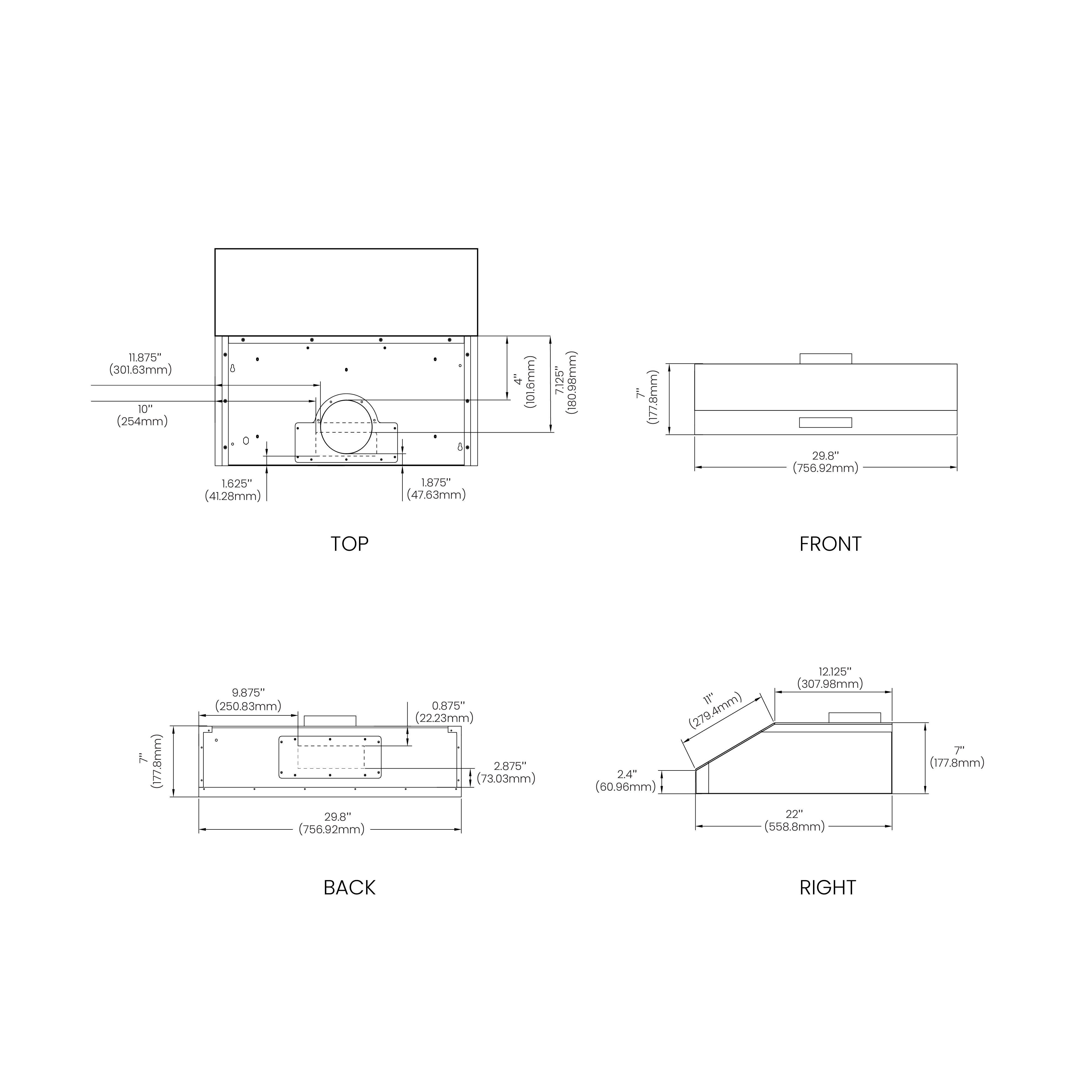 Hood Dimensions (W×D×H) 29.8" × 22" × 7"