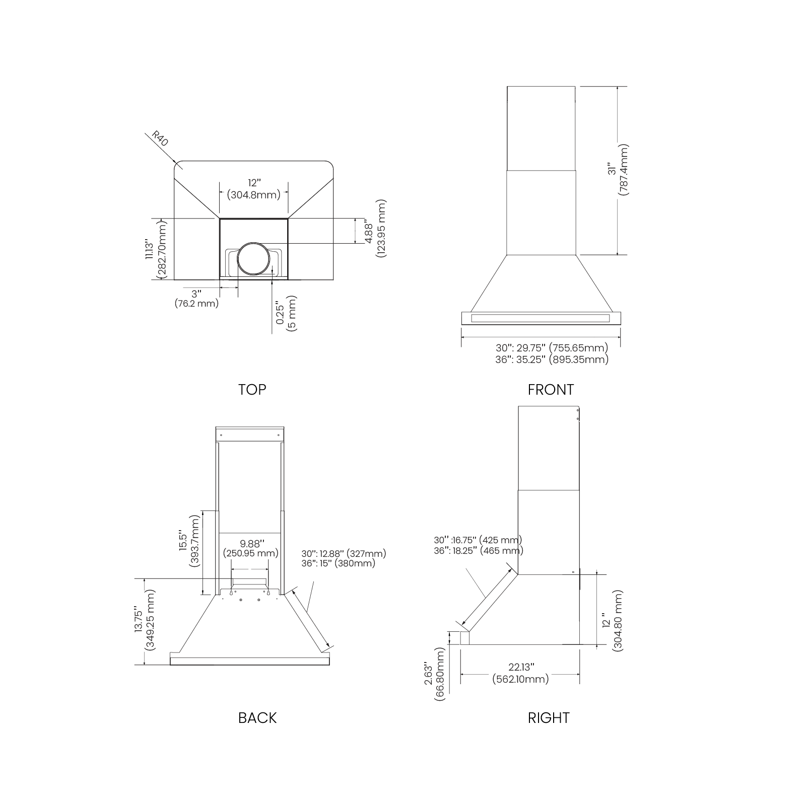Chimney Dimensions (W×D×H) | 12" × 11.13" × (15.5" - 31") |