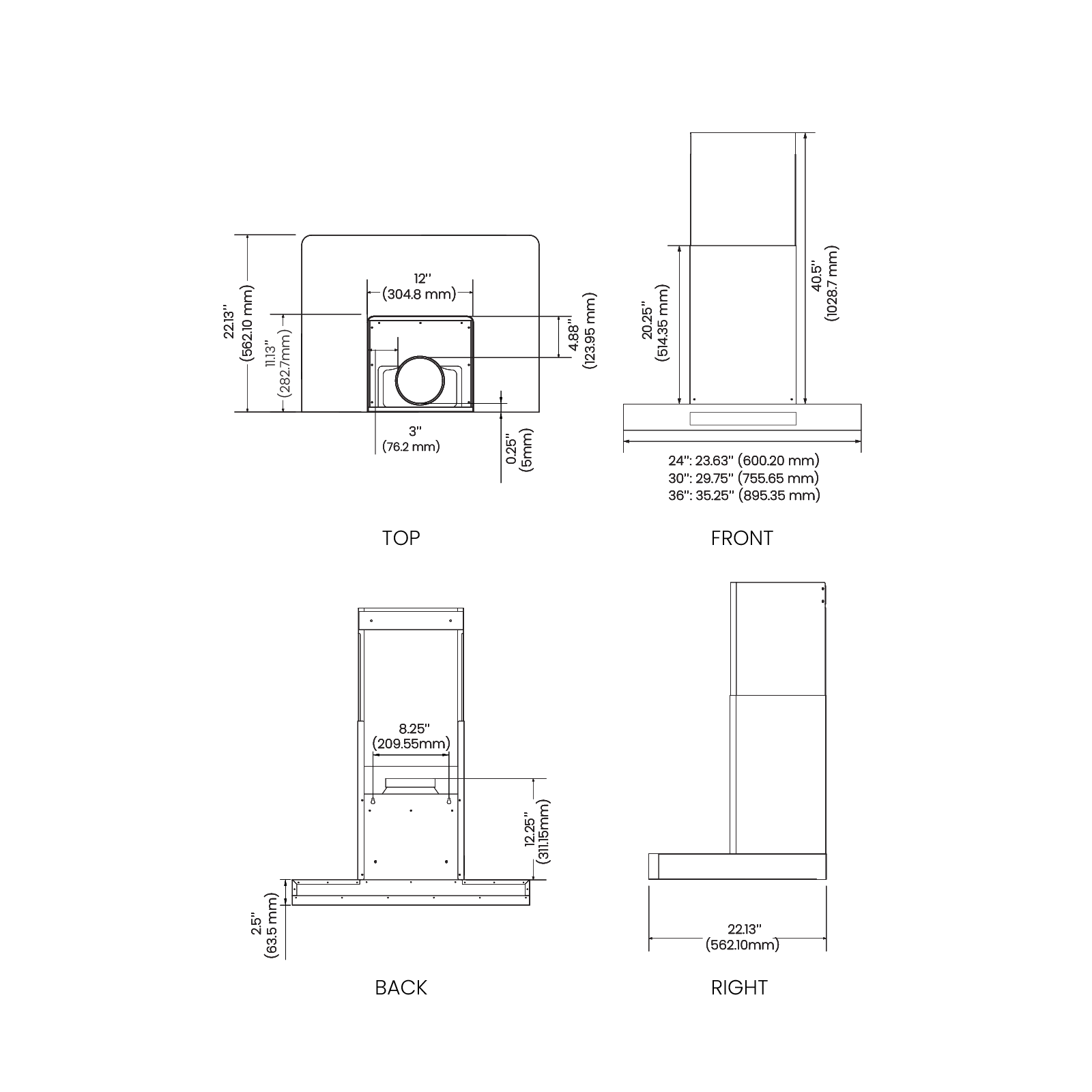 Chimney Dimensions (W×D×H) | 12" × 11.13" × (20.25" - 40.5") |