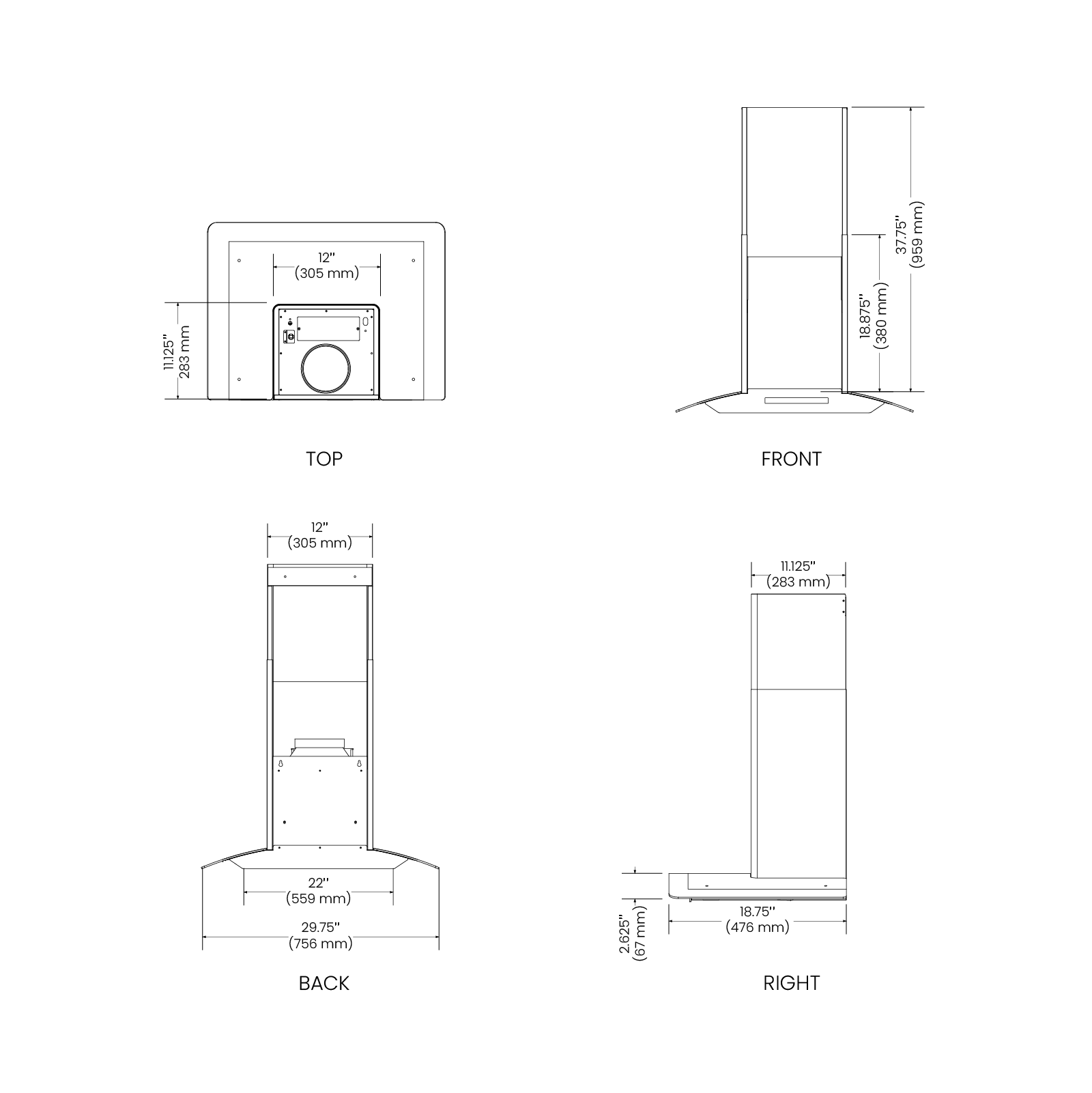 Hood Dimensions (W×D×H) | 29.75" × 18.75" × (21.5" - 40.38") |