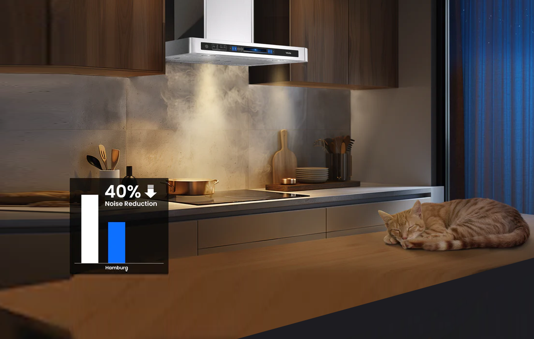 El funcionamiento silencioso es otro sello distintivo de las campanas extractoras Vesta, que garantiza que la cocina se mantenga tranquila y serena incluso durante las sesiones de cocina más intensas. A diferencia de muchos modelos convencionales que generan niveles de ruido molestos, nuestras campanas extractoras funcionan silenciosamente , permitiéndole concentrarse en la preparación de comidas o entablar conversaciones sin interrupciones. Los motores de precisión y los conductos cuidadosamente diseñados trabajan en conjunto para proporcionar una ventilación eficiente sin comprometer la tranquilidad. Este funcionamiento silencioso es especialmente beneficioso durante las reuniones familiares o mientras disfruta de un café matutino tranquilo, ya que mantiene el ambiente de su cocina sin interrupciones. Además, el diseño ultrasilencioso refleja nuestro compromiso de mejorar no solo la funcionalidad de su cocina, sino también su ambiente general, creando un entorno donde priorizan la salud y la comodidad.
