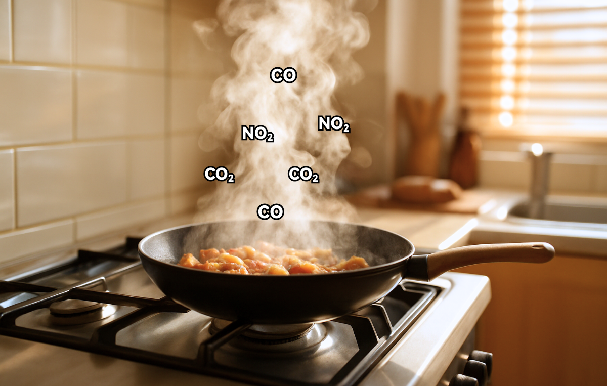 Al cocinar, se liberan gases como el CO₂ (dióxido de carbono) y el NO₂ (dióxido de nitrógeno) . Los métodos de cocción más ligeros, como el vapor y la ebullición, producen menos contaminantes, ya que utilizan temperaturas más bajas y evitan la combustión directa de aceites. En cambio, freír y asar a la parrilla generan más partículas nocivas debido al calor elevado y a la descomposición de las grasas. Las cocinas de gas también emiten más NO₂ que las eléctricas. Incluso hervir agua en una cocina de gas libera NO₂ al aire. Una ventilación adecuada , que incluye el uso de una campana extractora Vesta de última generación, puede ayudar a reducir la contaminación del aire interior y los riesgos para la salud asociados.