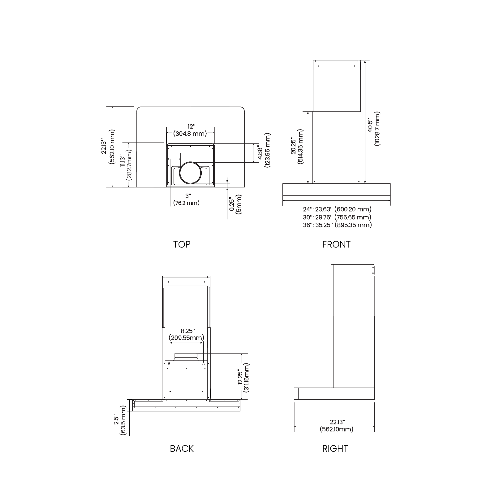 Dimensiones de la chimenea (An. × Pr. × Al.) 30,5 cm × 28,9 cm × (51,8 cm - 102,6 cm)